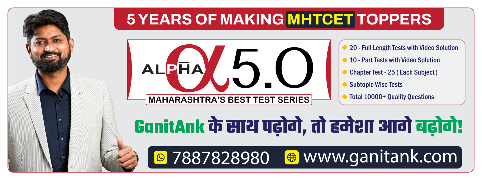 The Alpha Test Series is considered one of the best Test Series in Maharashtra for MHT-CET. It is well-structured, organized, and exam-pattern based, with Video Solutions provided for better understanding and improvement.
